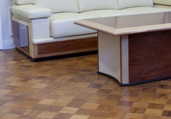 Инженерный модуль – это готовый к укладке двухслойный паркет. На основание из влагостойкой фанеры под большим давлением приклеены планки из твёрдолиственной породы, образующие оригинальный рисунок художественного паркета. Для сборки модуля между собой по периметру нарезается паз-гребень.Толщина ламели из ценных пород - 3 мм.