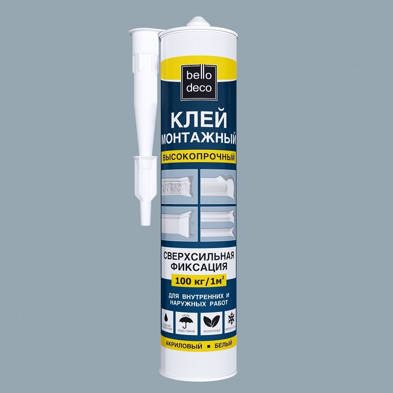 Поверхности, на которых могут производиться работы с помощью клея: дерево и его производные (ДВП, багеты, панели, наличники, бруски, лепные орнаменты, плинтуса, бруски, паркетные планки), пластмасса (коробки, панели из ПВХ, электрические розетки), металл (крепежные уголки, балки), пенополистирол, металл, камень, кирпич, зеркала к любому типу минеральных пористых поверхностей. Применим для помещений с повышенной влажностью (ванны, санузлы и т.п.).