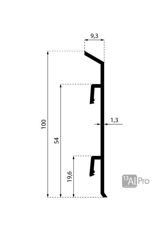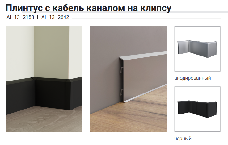 Плинтус алюминиевый анодированный с кабель-каналом на клипсу L100