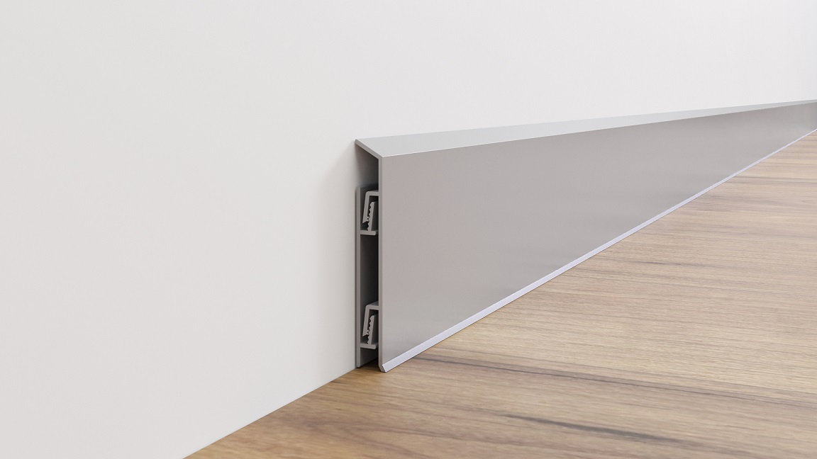 AluminiumPro Плинтус 13-2642 алюминиевый анодированный с кабель-каналом на клипсу L 100 серебро матовое 2,95 м