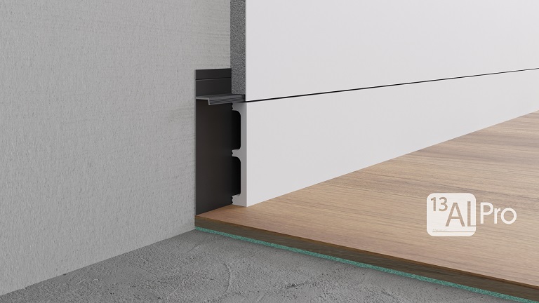 - Можно комбинировать с алюминиевым уголком, чтобы скрыть компенсационный зазор