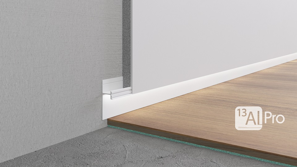 AluminiumPro Теневой плинтус скрытого монтажа AlPro13-7209 Белый МУАР (под подсветку) 2.7 м.