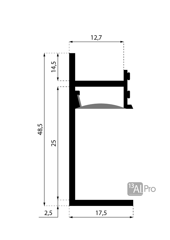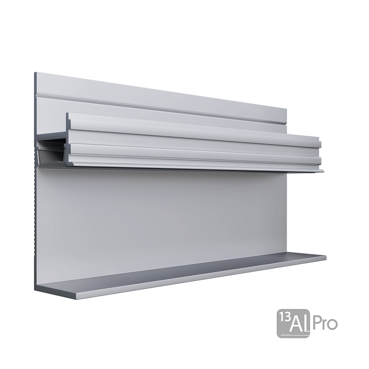 НазваниеТеневой плинтус скрытого монтажа AlPro13-7210 с нижней полкой Анодированный (под подсветку) 2.7 м.