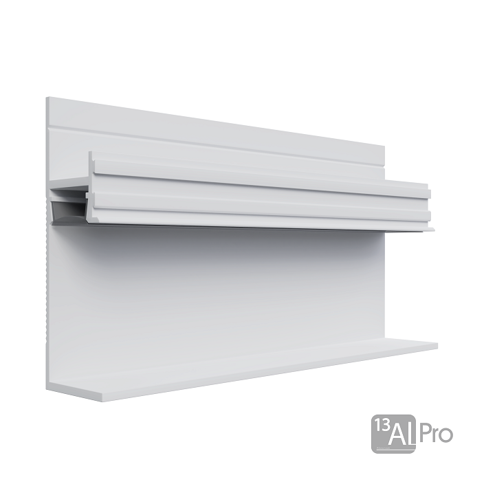 НазваниеТеневой плинтус скрытого монтажа AlPro13-7210 с нижней полкой БелыйМУАР(под подсветку) 2.7 м.