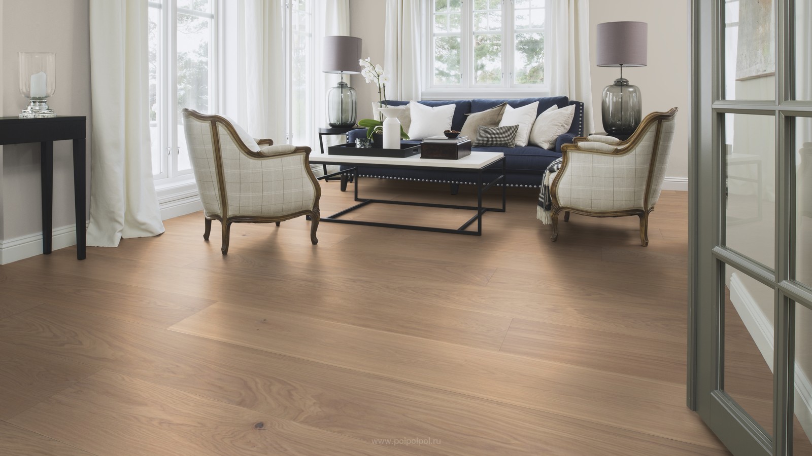 Большие комнаты вдохновляют на декорирование очень широкими досками. Длина доски Шалетино 2.75 м, ширина 30 см.Тщательно спроектированный дизайн. Надёжная 3-х слойная конструкция с износостойким слоем из твёрдой древесины толщиной 4.5 мм была спроектирована для длительной эксплуатации. Фаска с четырёх сторон. Все доски с микро фаской 1 мм под углом 45 градусов вдоль четырёх сторон. Фаска делает акцент на значительную длину и ширину этих больших досок. На длинных сторонах всех досок - шип-паз, на коротких - вставной плоский шип.