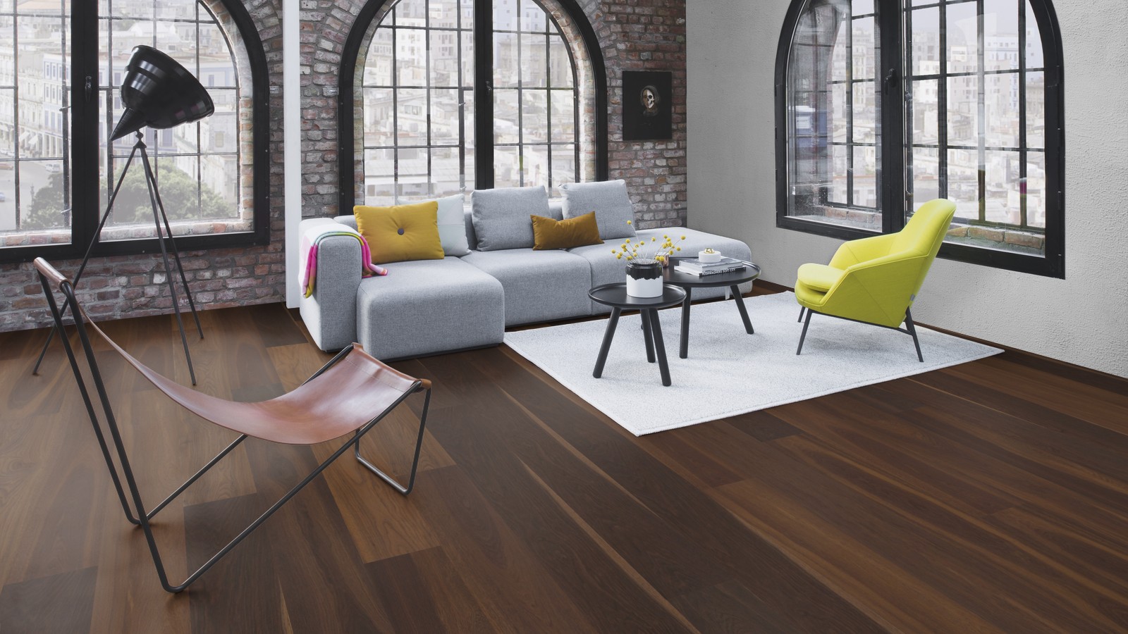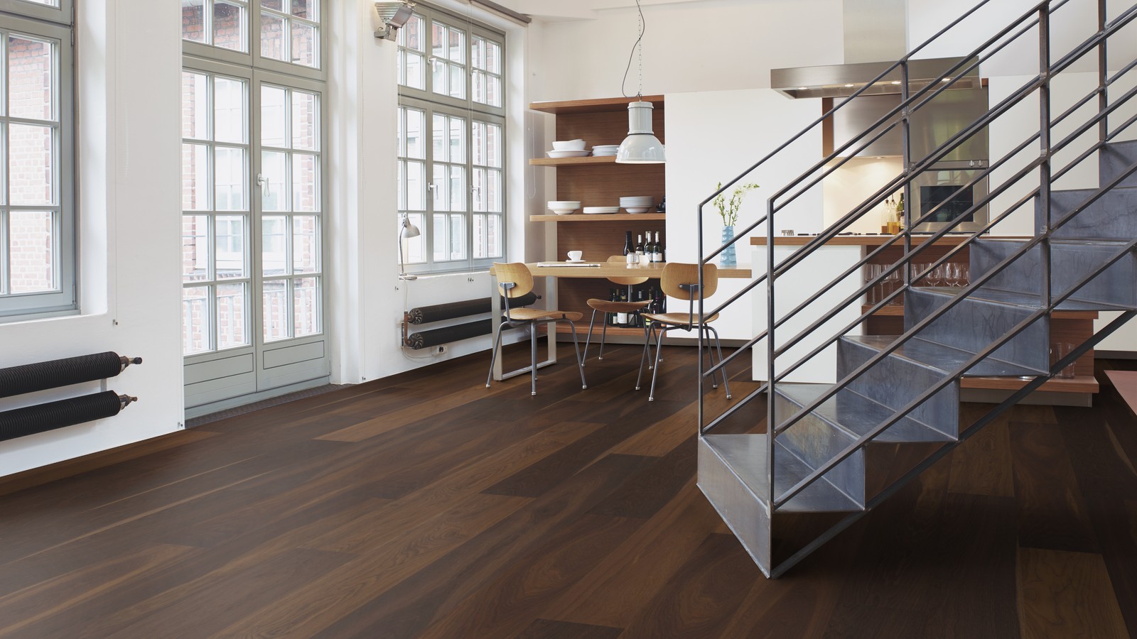 Однополосная паркетная доска дуб Smoked 209 браш, фаска, покрытие Live Pure. Благодаря специальной обработке напольного покрытия, Live Pure представляет собой поверхностный слой, который защищает пол от пыли, грязи, жидкостей и химических веществ, хотя в то же время пол выглядит и ощущается как необработанная или отшлифованная сырая древесина. Поверхность, обработанная Live Pure, также отличается лучшей устойчивостью к УФ лучам, чем стандартные покрытия из лака и масла. После укладки пола и во время его использования не требуется никакой дополнительный уход.