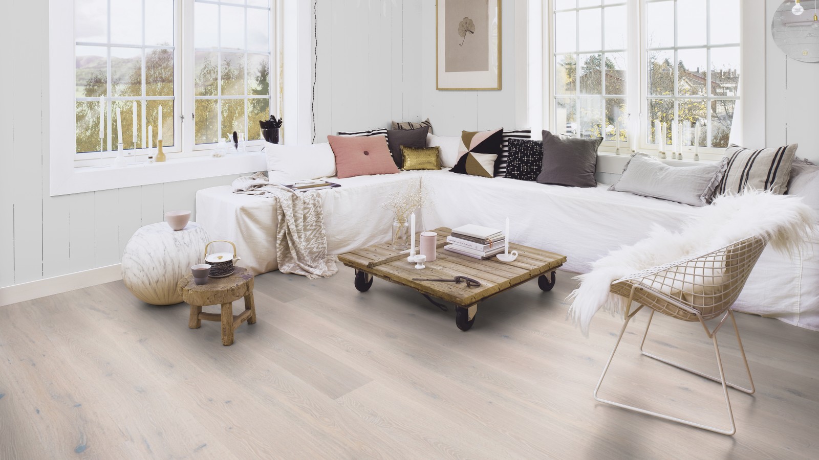 Новинка 2016 года! Boen коллекция Stonewashed однополосная паркетная доска дуб White Stone. Брашированная, покрытая натуральным маслом с ярко белым пигментом.