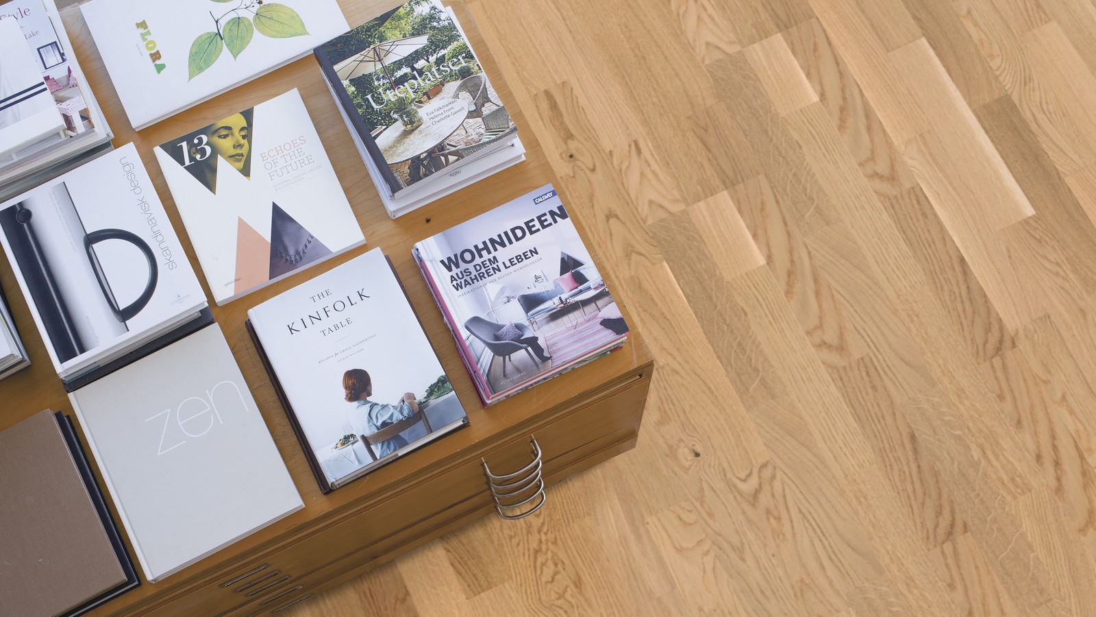 Трёхполосная паркетная доска дуб Finale,без фаски, покрытие полуматовый лак