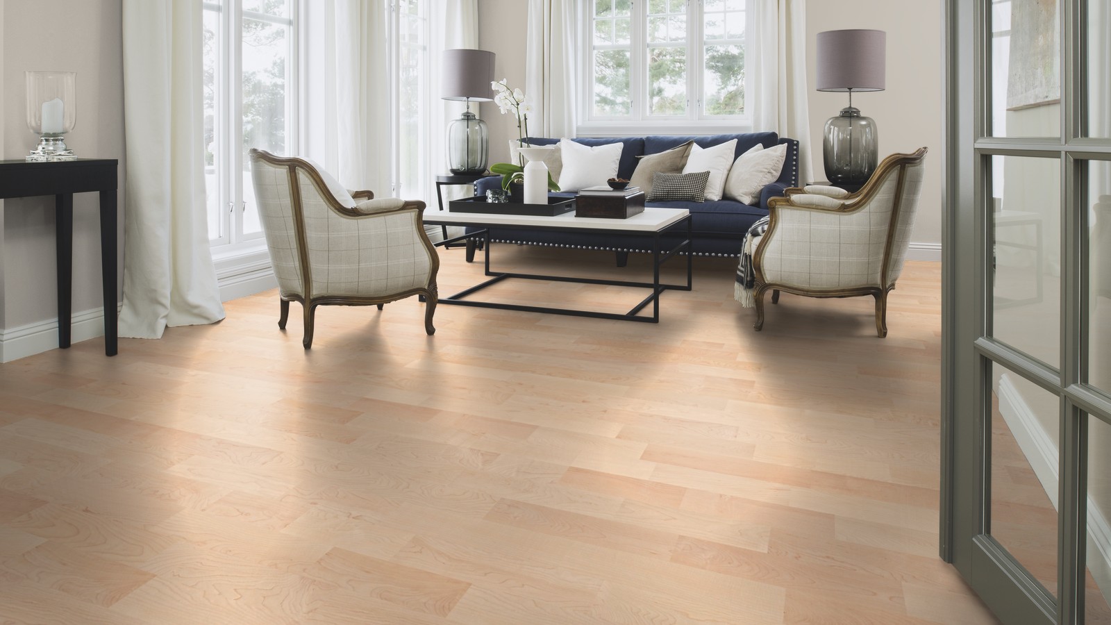 Трёхполосная паркетная доска клён Анданте,без фаски, покрытие полуматовый лак