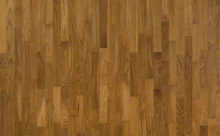 Классическая трехполосная доска из дуба под коричневым матовым лаком.
